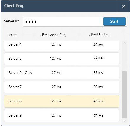 این قابلیت به شما اجازه میدهد پینگ تایم دقیق درون سرور ها را قبل از اتصال به سرور مشاهده کنید